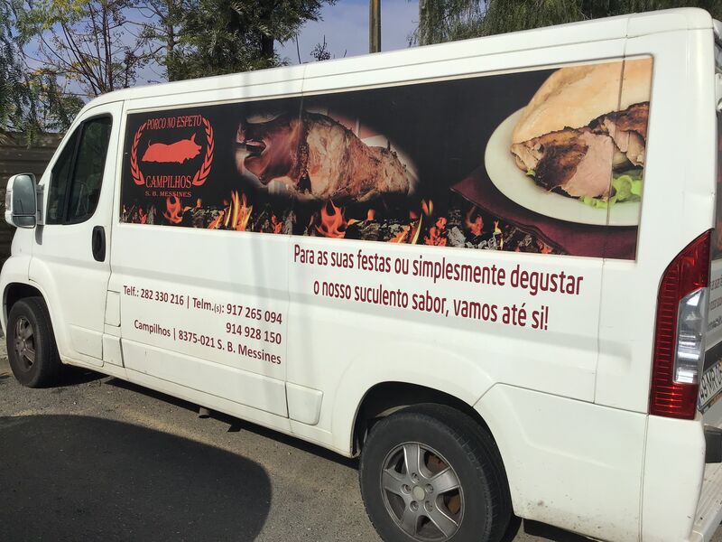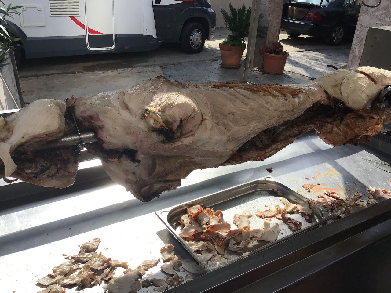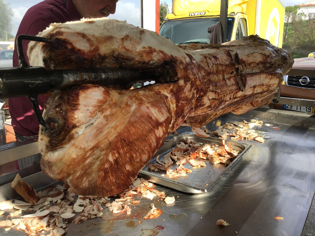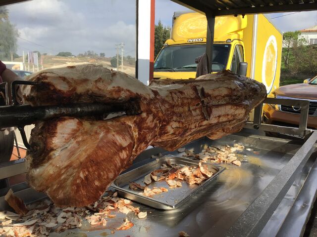 Venha desfrutar de um belo porco no espeto, um verdadeiro manjar.